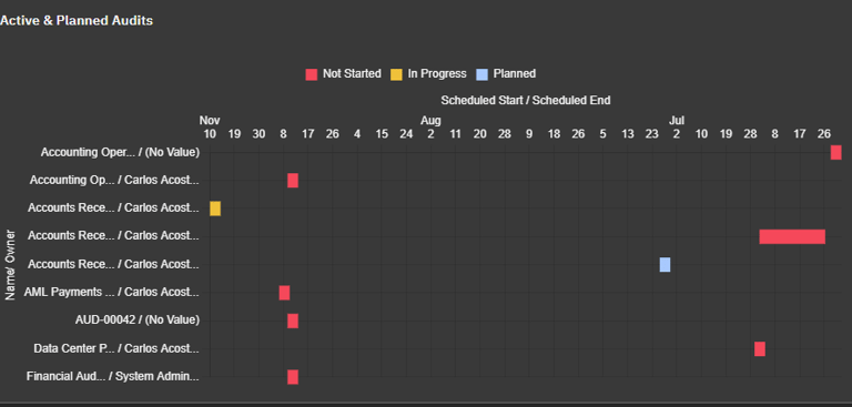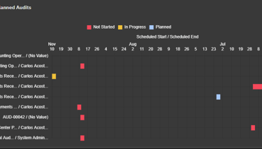 Generate comprehensive audit reports with a single click, pulling data directly from the central repository. Visual tools like Gantt charts provide clear insights to support planning and decision-making.
