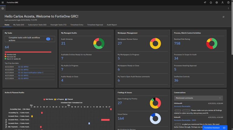 Automate internal audits and streamline risk and compliance management with the FortisOne GRC Internal Audit Management module.